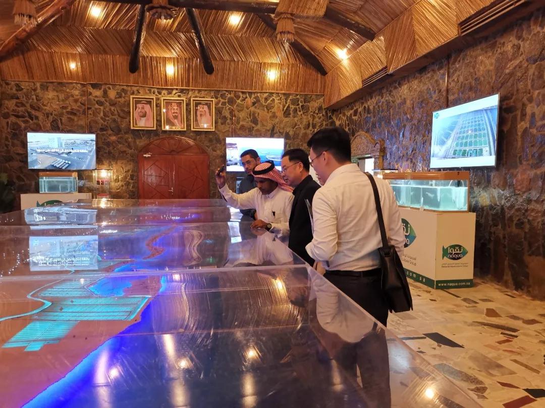 11月28日,应沙特阿拉伯水产养殖集团(NAQUA)邀请,驻沙特大使陈伟庆一行赴该集团总部进行渔业考察。陈伟庆一行听取了公司历史和经营现状情况介绍,并在公司负责人陪同下参观了虾类育种与养殖实验基地、产品冷冻与包装生产线、多功能实验室等,了解了沙特水产养殖业的发展动态。